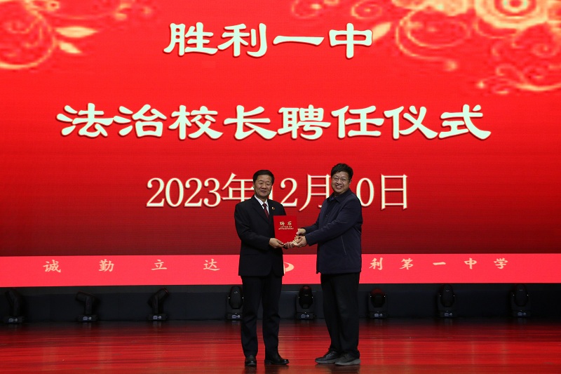 讲座由学校党委委员、副校长高同海主持。讲座前,学校党委书记赵汝升为丁西超检察长颁发聘书,聘请丁西超检察长为胜利一中法治校长,丁西超检察长向学校赠送了一批法治教育图书。