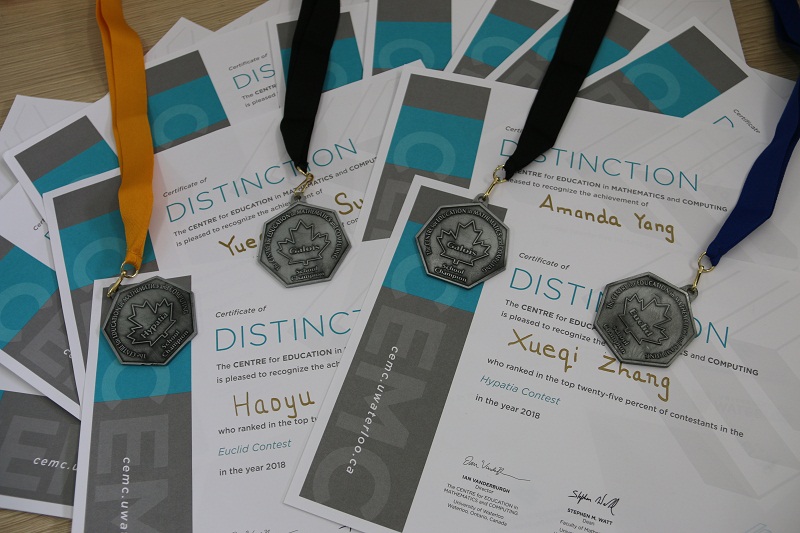 中加班为此举办了颁奖仪式,为优胜学生颁发奖牌和奖状,肯定他们在数学方面取得的傲人成果,也激励其他学生再接再厉、抓住机遇、迎面挑战。期待中加学子在明年滑铁卢数学竞赛中的精彩表现!