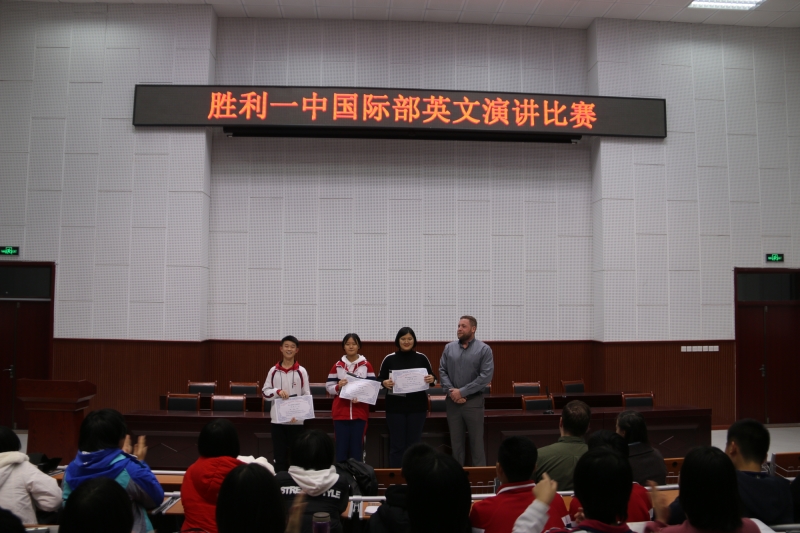 In order to arouse the students’ interest in learning English and provide more chances for the students to show themselves, the International Department of Shengli No. 1 Middle School held an English Speech Contest recently. After two rounds of intense selection process, 20 students from the 10th and 11th grades participated in the final competition. In the evening of November 26th, 2018, the English Speech Contest Final drew to a close in the No.1 Building Academic Reporting Hall.