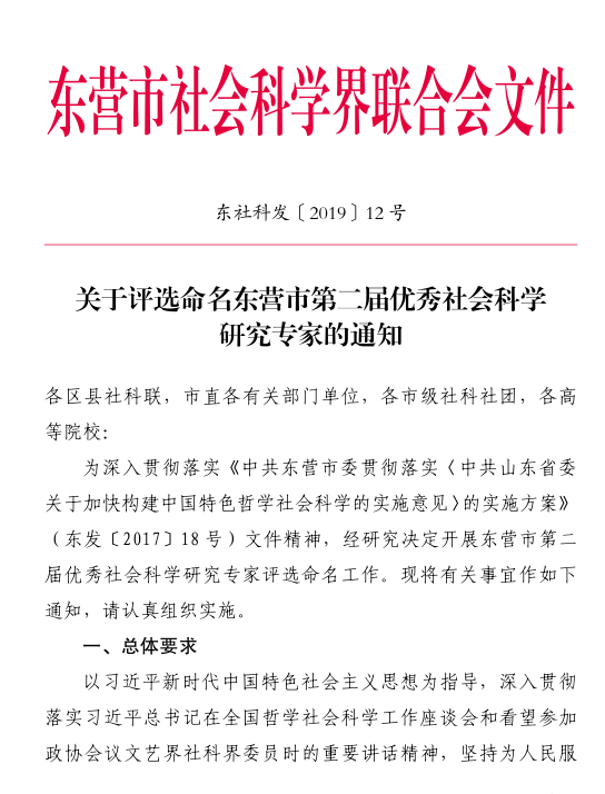 附件:关于评选命名东营市第二届优秀社会科学研究专家的通知