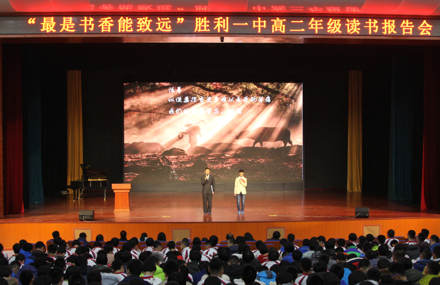 11月26日上午,我校“最是书香能致远”高二年级读书报告会在新校区礼堂隆重举行,高二全体学生及部分教师、家长参加。