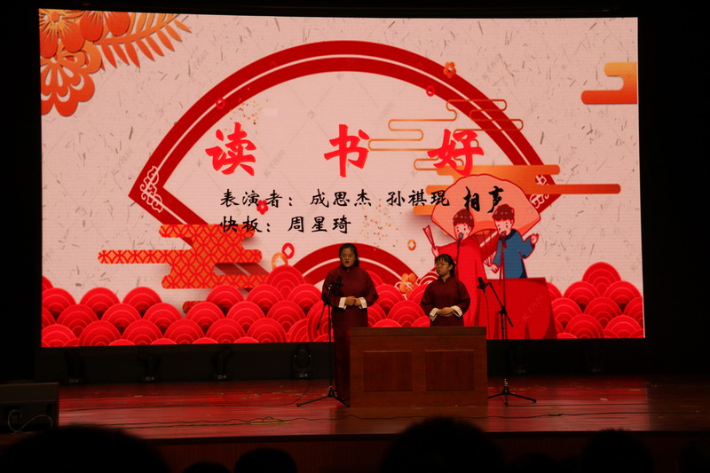 《黎明之际》以充沛饱满的感情、掷地有声的台词诠释了革命烈士江姐宁死不屈的伟大斗争精神。《觉醒年代》则以梦幻联动的方式,让人重温那誓死捍卫主权和尊严的高声呐喊,真实再现了“五四”时期青年学生家国意识的觉醒。《茶馆》则通过声情并茂的表演,还原了清末民初复杂的社会图景,展现了经典的永恒魅力。相声《读书好》融合了流行歌曲等时尚元素,趣味横生,引人入胜。朗诵《语文里面有什么》则对高中语文的经典篇目进行了深入解读,诗情画意之中让人领悟语文学习是唯美的享受……