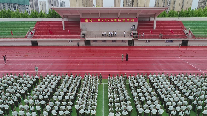 8月20日上午,新整修的田径场上国歌嘹亮,军旗猎猎,胜利一中2024级全体新生整装列队,新生军训营隆重开营。