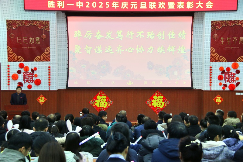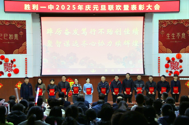 2025元旦联欢暨表彰大会,为全校师生员工和家属呈现了一场视听与心灵的精彩盛宴。为“胜利舰”2024年的航程画上了圆满句号,也开启了学校2025年乘势而上、奋楫扬帆的新征程。2025年是学校发展高位推进之年,也是新阶段谋定起势、拔锚启航之年。新的一年里,全体胜利一中人将在学校领导班子的坚实引领下,踔厉奋发笃行不怠、聚智谋远齐心协力,必将创造更多新佳绩、续写更大新辉煌!